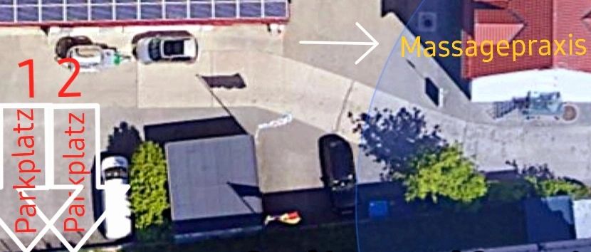 Die beiden Parkplätze sind mit PRAXIS gekennzeichnet.